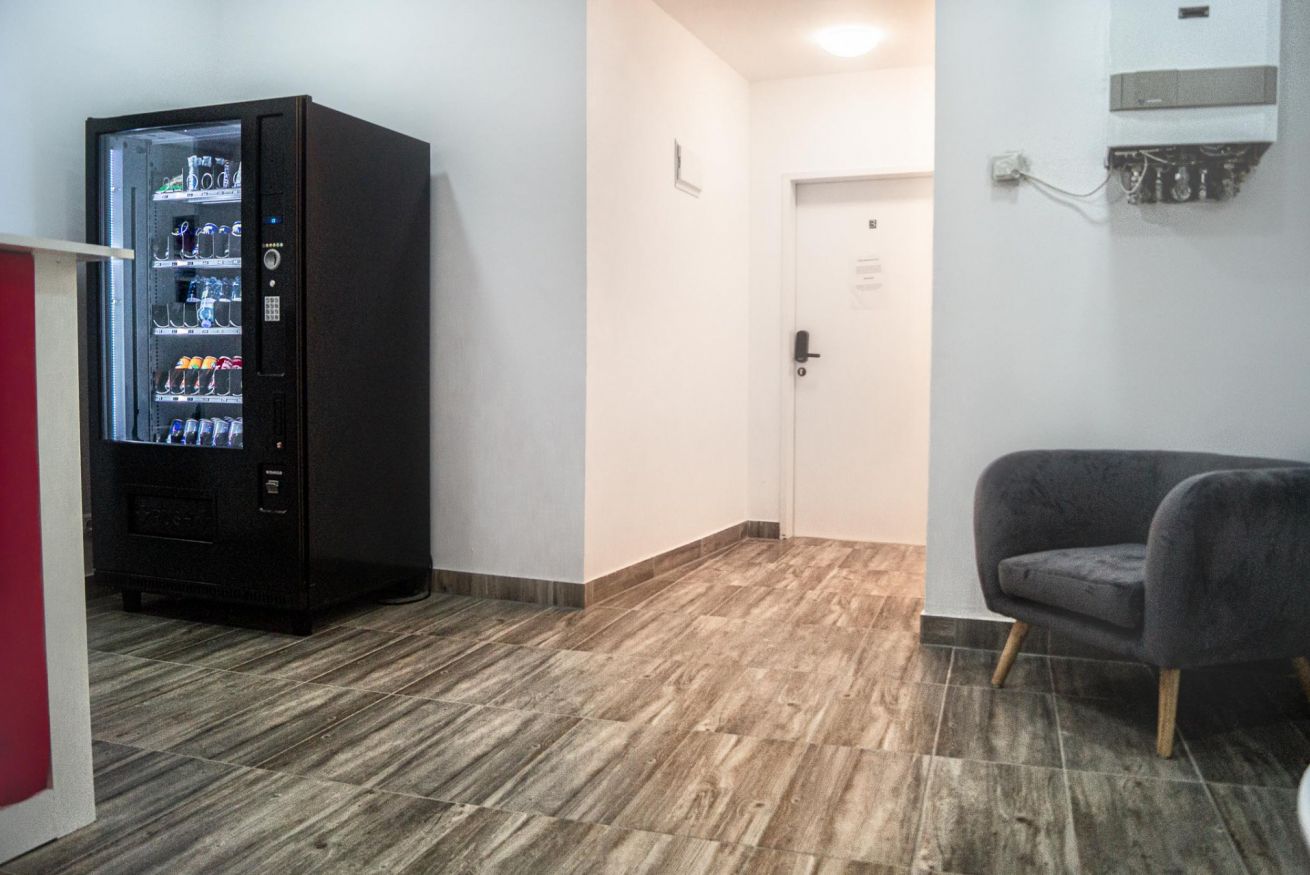 This private hotel room is on the first floor of a residential building in Vienna’s 6th district. With 13 m² of space, it accommodates up to two guests. The building has no elevator; access is via stairs. The room includes a private bathroom and access to a shared lobby with coffee and beverage vending machines. There is no kitchen.