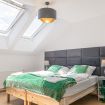 The first bedroom features a comfortable king bed (180 x 200 cm), a TV for entertainment, and a spacious wardrobe to keep your belongings organized. This room serves as a serene retreat, ideal for unwinding after a day of exploration or work.