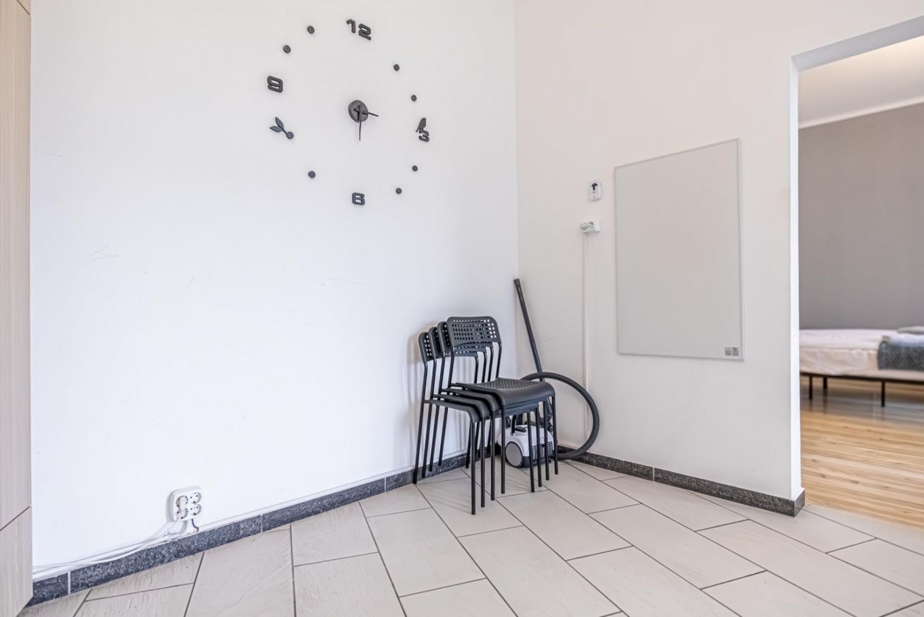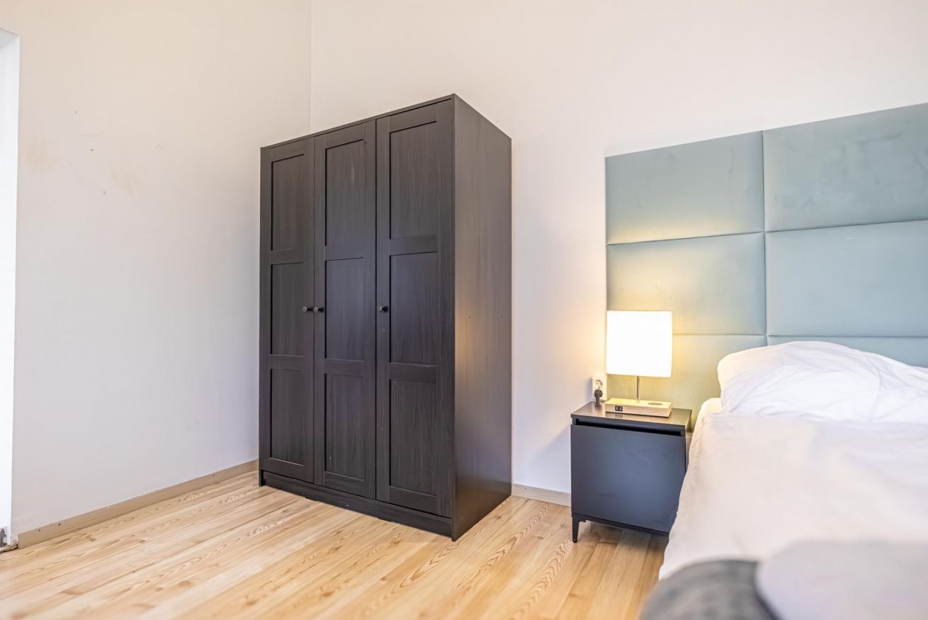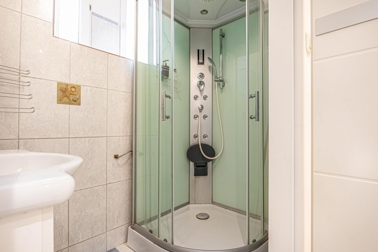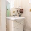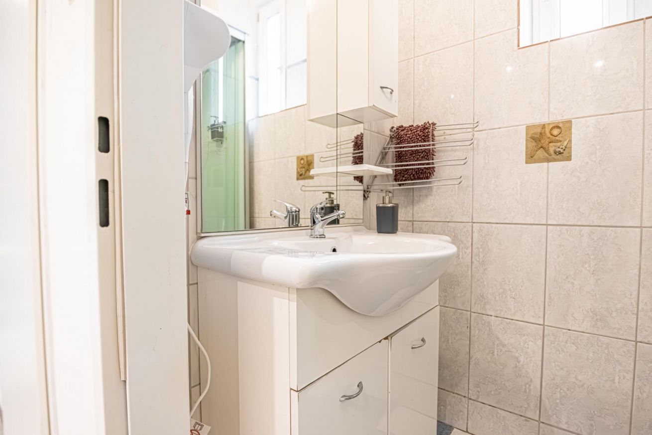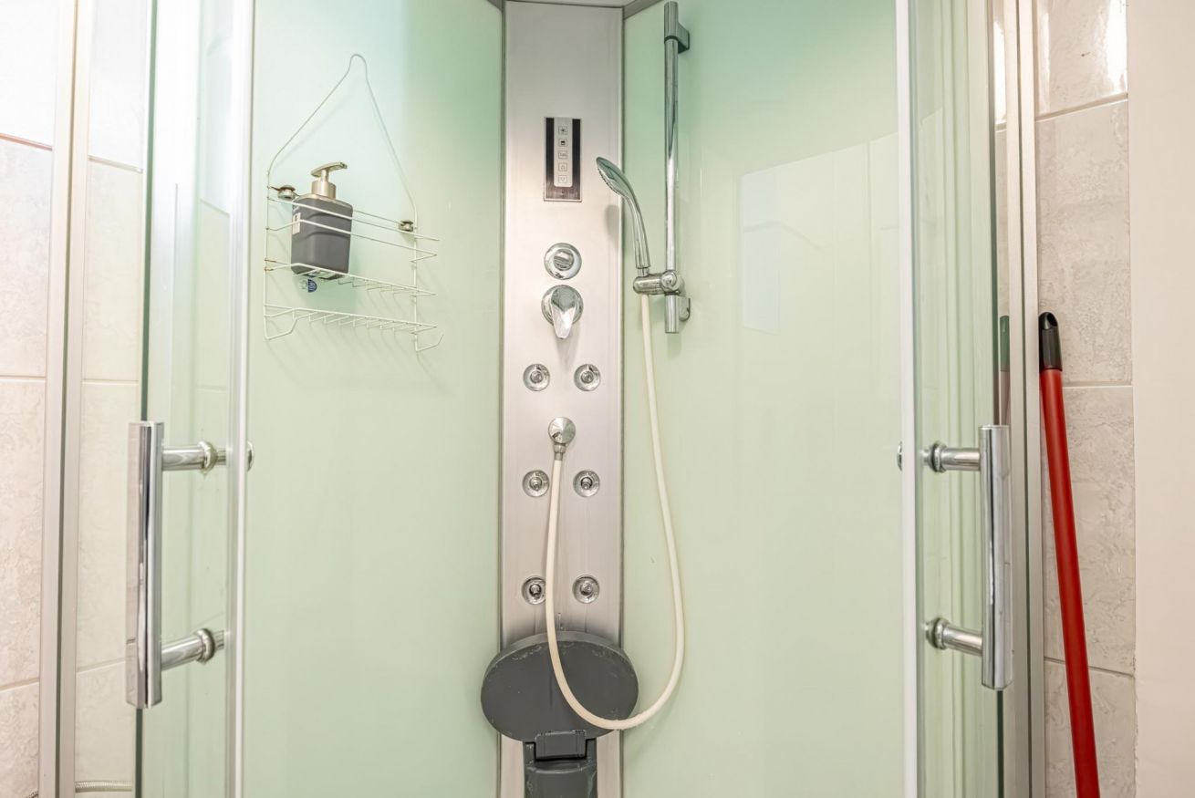 The apartment includes full private bathroom, where the toilet and shower are located in the same room. The bathroom is clean and practical, offering everything needed for daily comfort.