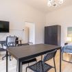 A dining table is available and is conveniently located within the bedroom. There is no outdoor dining space.