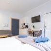 The studio features a comfortable double bed and a sofa bed that accommodates 3 guests, providing a restful and inviting space to relax after a long day of exploring the city.