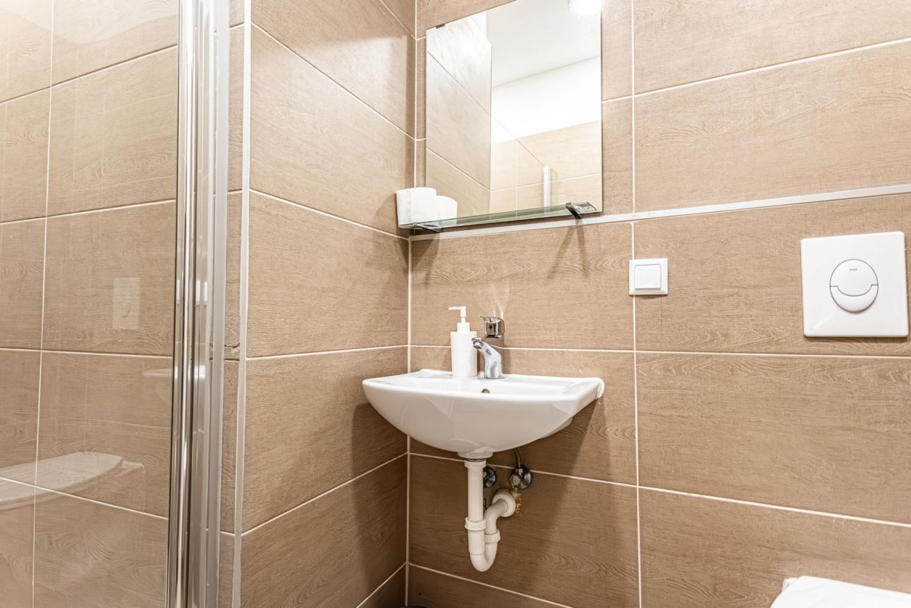 The double room’s windows face a quiet courtyard, while the quad and triple rooms overlook lively Mariahilferstrasse, offering a vibrant city atmosphere. Noise from the street may be heard in the rooms facing the main road.