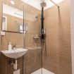 This private hotel room is located on the 1st floor of a residential building in Vienna’s 6th district. It measures 17 m² and accommodates up to two guests. The building has no elevator. The room includes a private bathroom and access to a shared lobby with coffee and beverage vending machines. There is no kitchen.