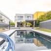 The villa features a private garden, terrace, heated pool (on request in winter), sauna, cinema room, and two private parking spaces, providing the perfect mix of relaxation and convenience.