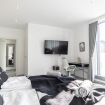 Each bedroom is tastefully furnished with king beds and wardrobes, while the spacious living room includes a sofa, TV, dining table, and an additional sofa bed.