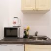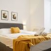 These bright, cozy rooms are located on the first floor of a residential building in Vienna’s 6th district. It measures 145 m² and accommodates up to 22 guests. The building has no elevator. The rooms includes a private bathroom and access to a shared lobby with coffee and beverage vending machines. There is no kitchen.