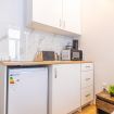 The studio comes with its own fully equipped kitchen, complete with a kettle, microwave, mini fridge, stove, frying pan, cutlery.